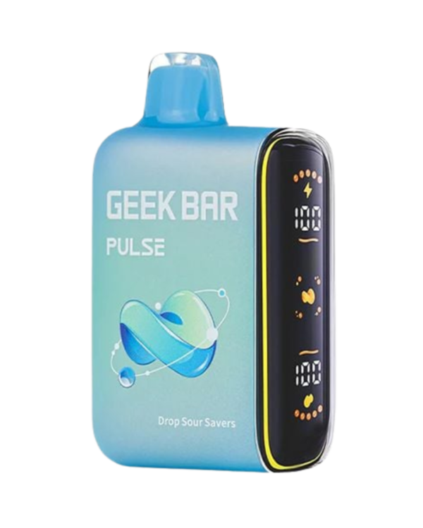 The Drop Sour Savers Geek Bar Pulse 15000 can deliver up to 15,000 puffs in regular mode. In pulse mode, you get around 7,500 puffs with stronger bursts of vapor and flavor intensity.