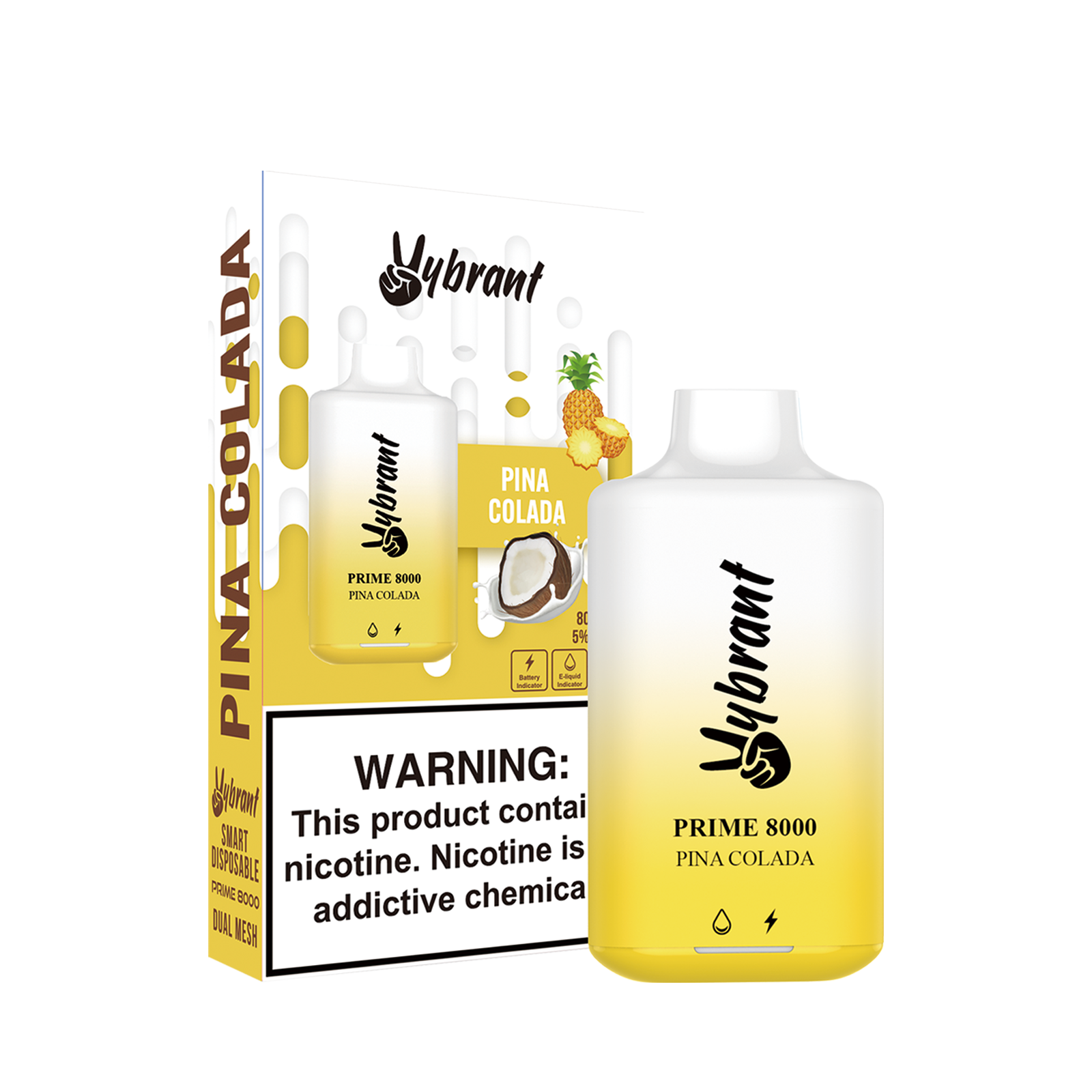 Our PRIME 8000 Pina Colada Disposable Vape captures the creamy sweetness of coconut and the juicy bite of pineapple in one tropical blend. Each puff feels bright and flavorful, pairing rich taste with clean vapor through its advanced mesh coil design. With reliable airflow, steady performance, and a lightweight rechargeable build, it’s your perfect tropical companion for all-day vaping.